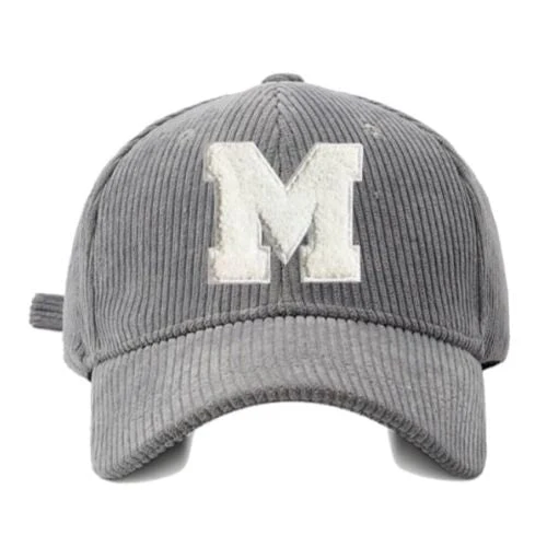 La Casquette Velours Broderie M, une casquette en velours brodée avec la lettre « M », alliant douceur et élégance pour un style intemporel.