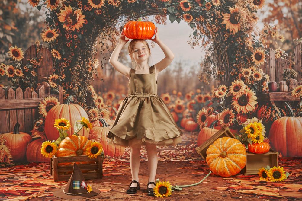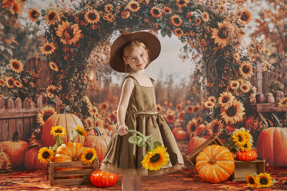 Kate Automne Tournesol Citrouille Arche Toile de fond+Tournesols Chemin Sol Toile de fond