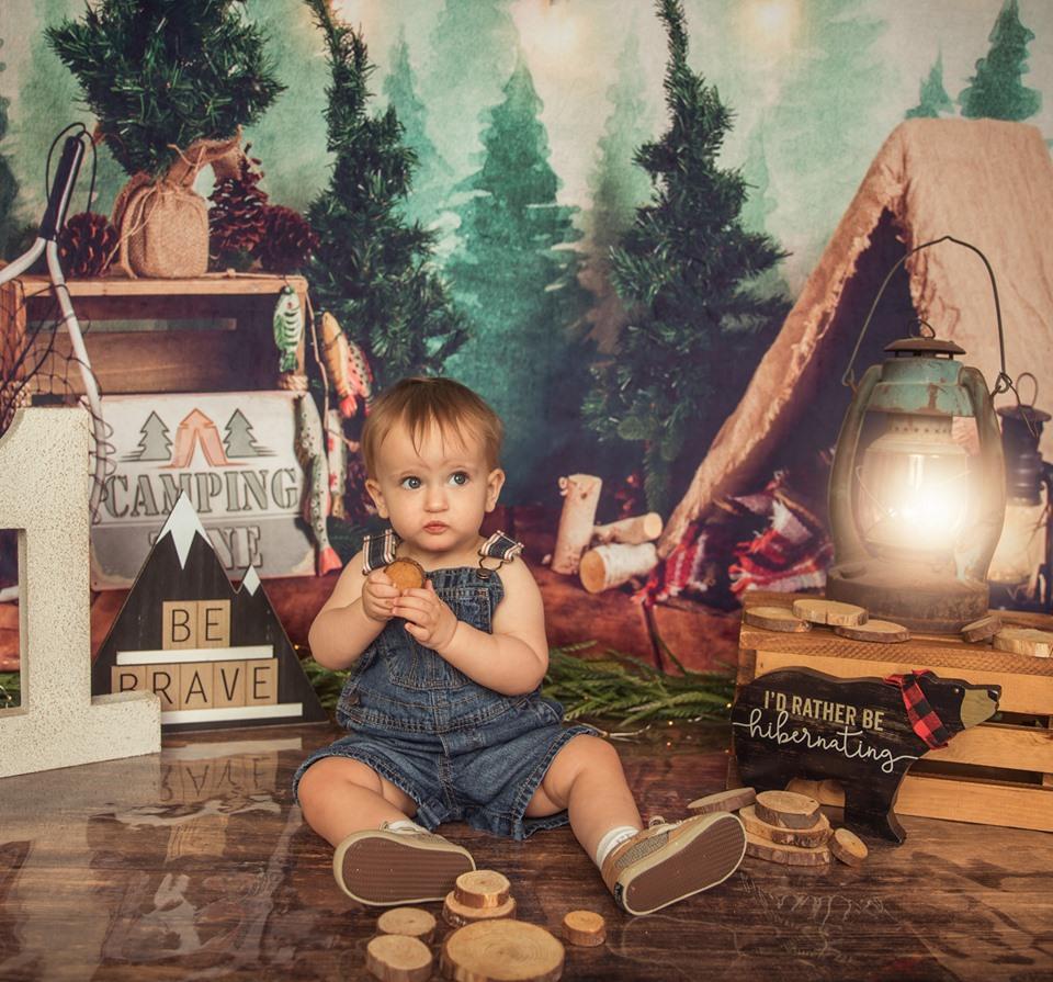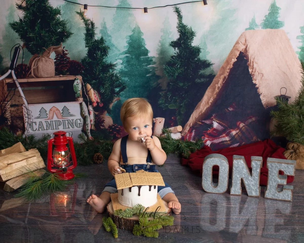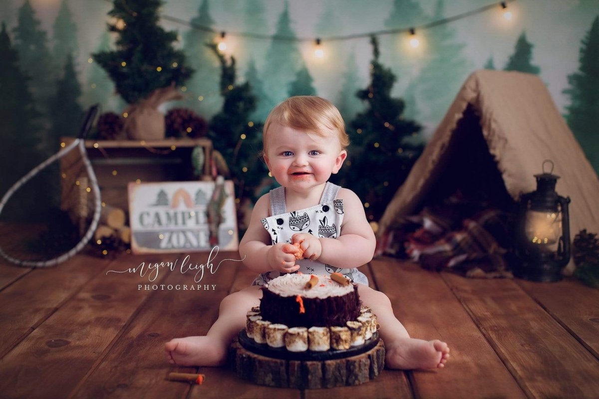 Kate Cake smash Forêt Zone de camping Été Toile de fond conçu par Megan Leigh