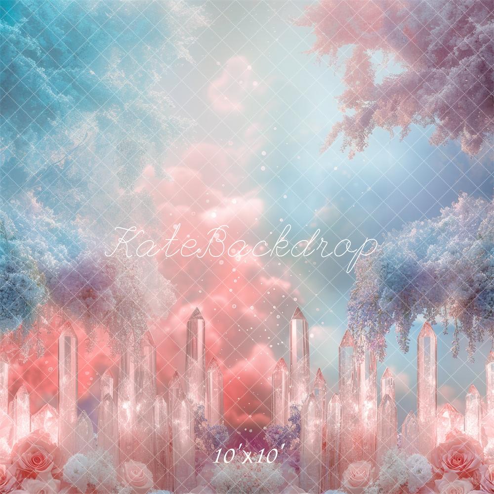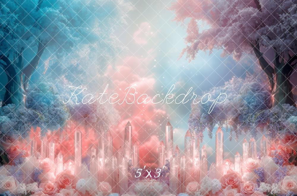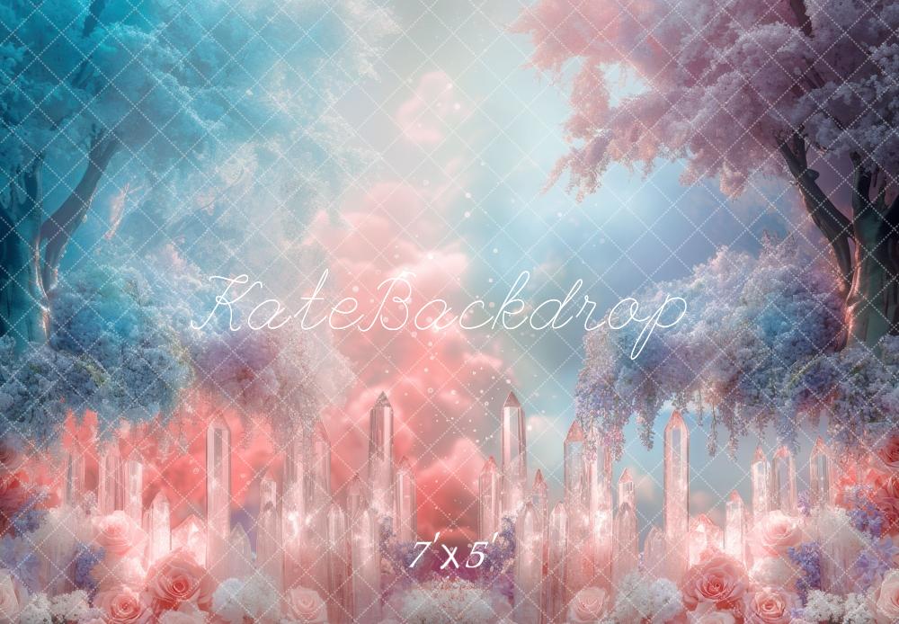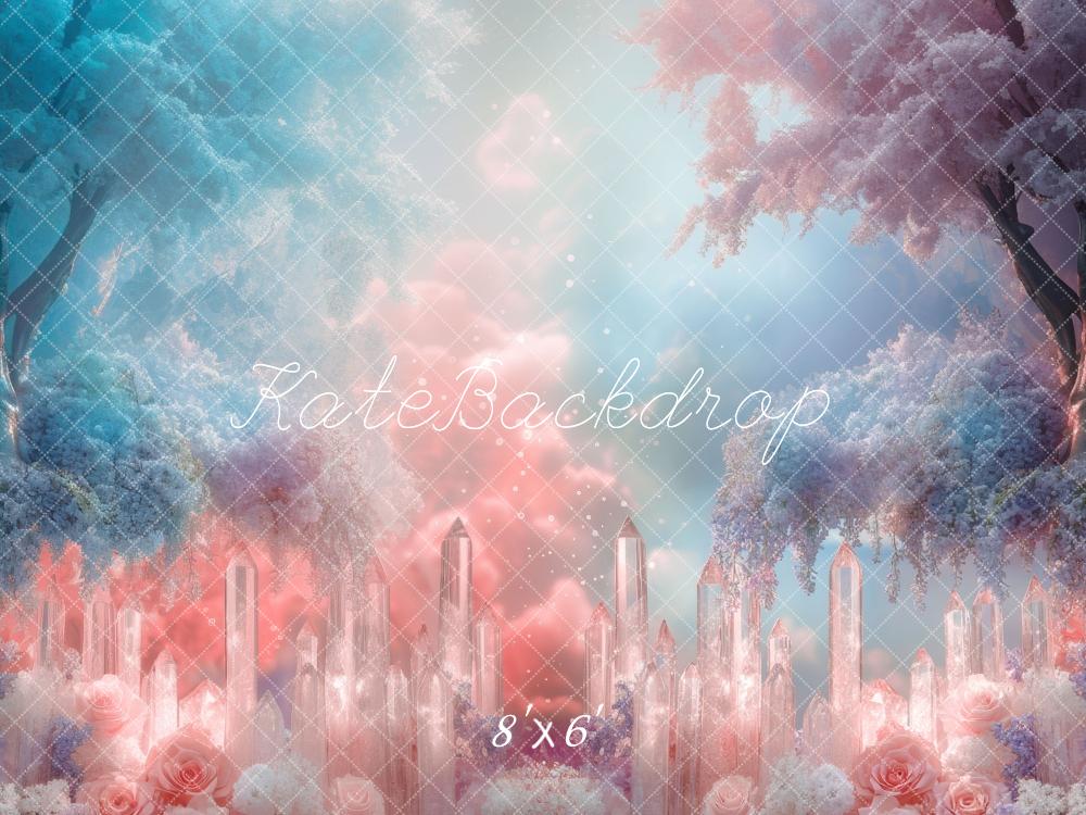 Kate Fantasy Arbres Cristaux Fleurs Pastel Toile de fond conçue par Mini MakeBelieve