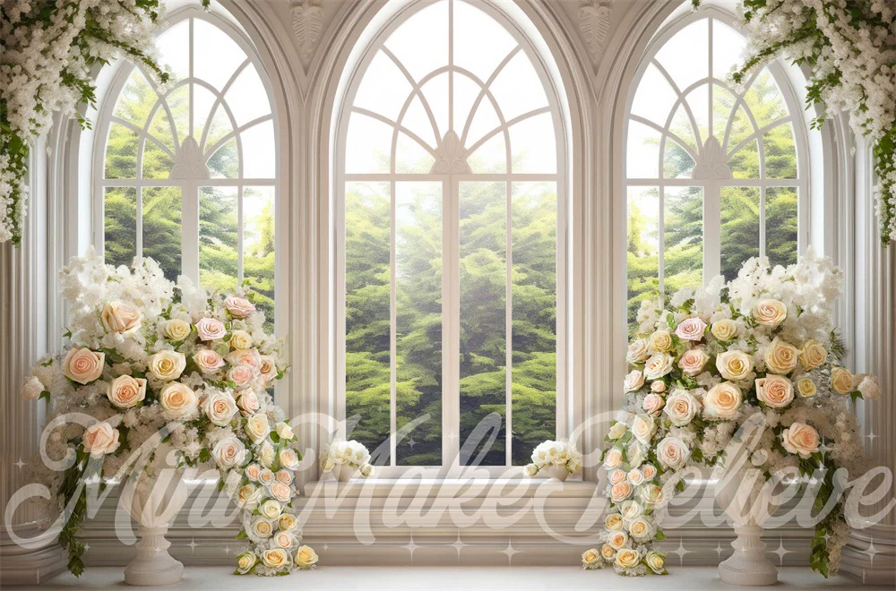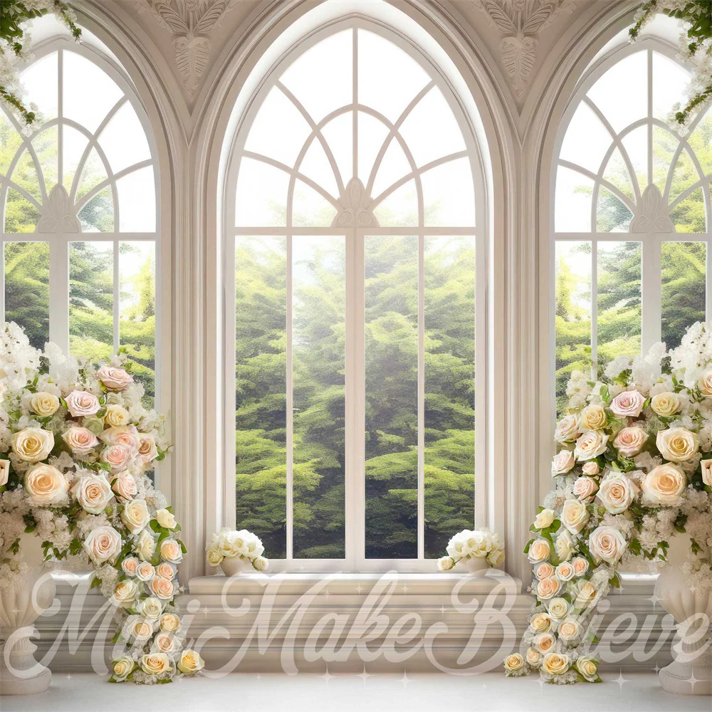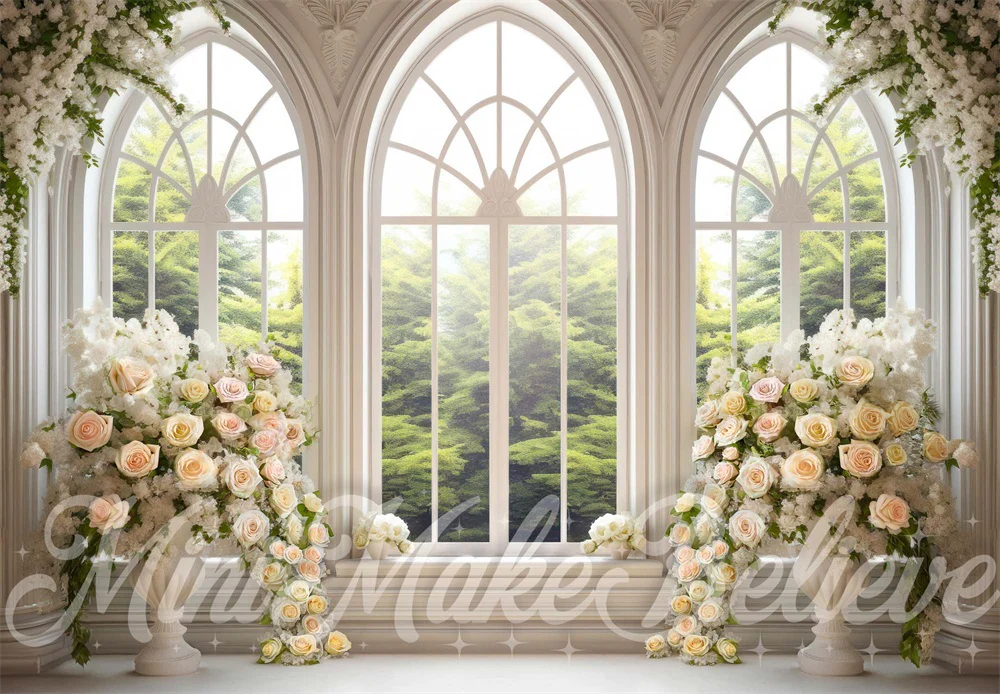 Kate Fleurs Cathédrale Blanc Fenêtres Printemps Toile de fond conçue par Mini MakeBelieve