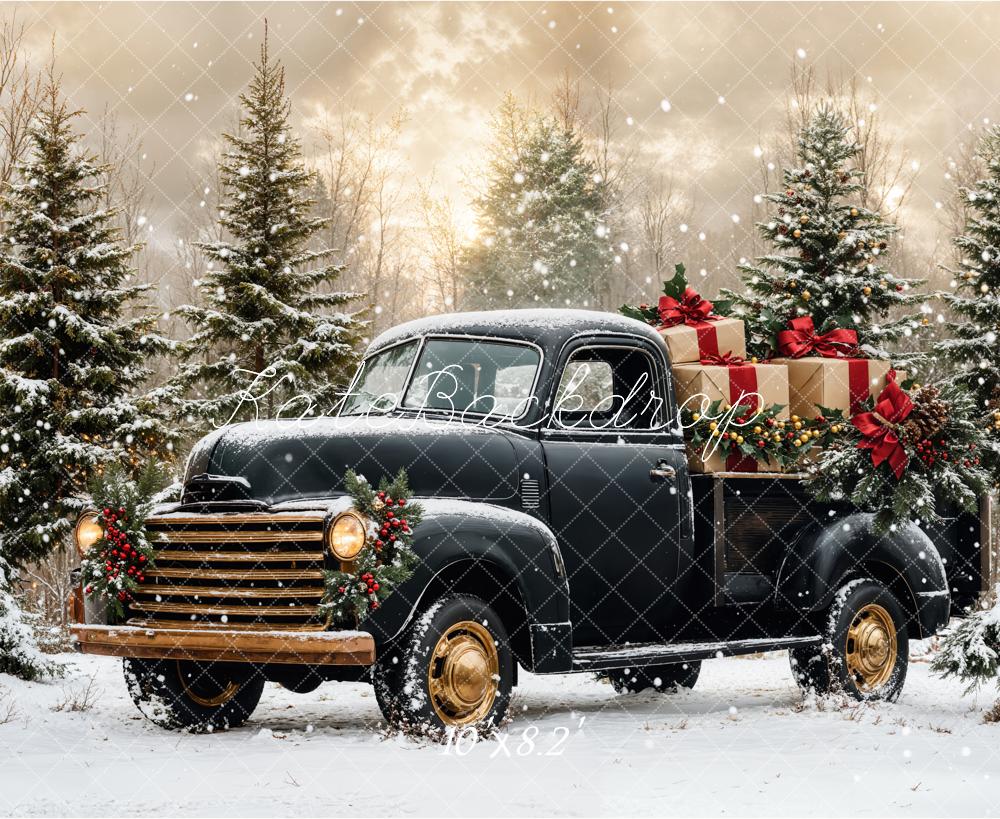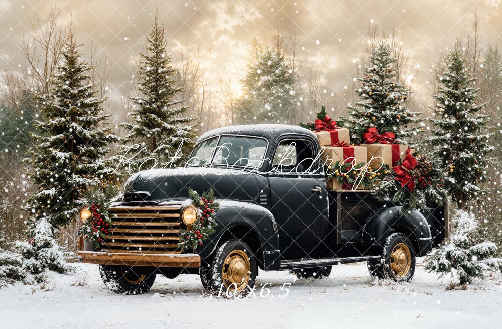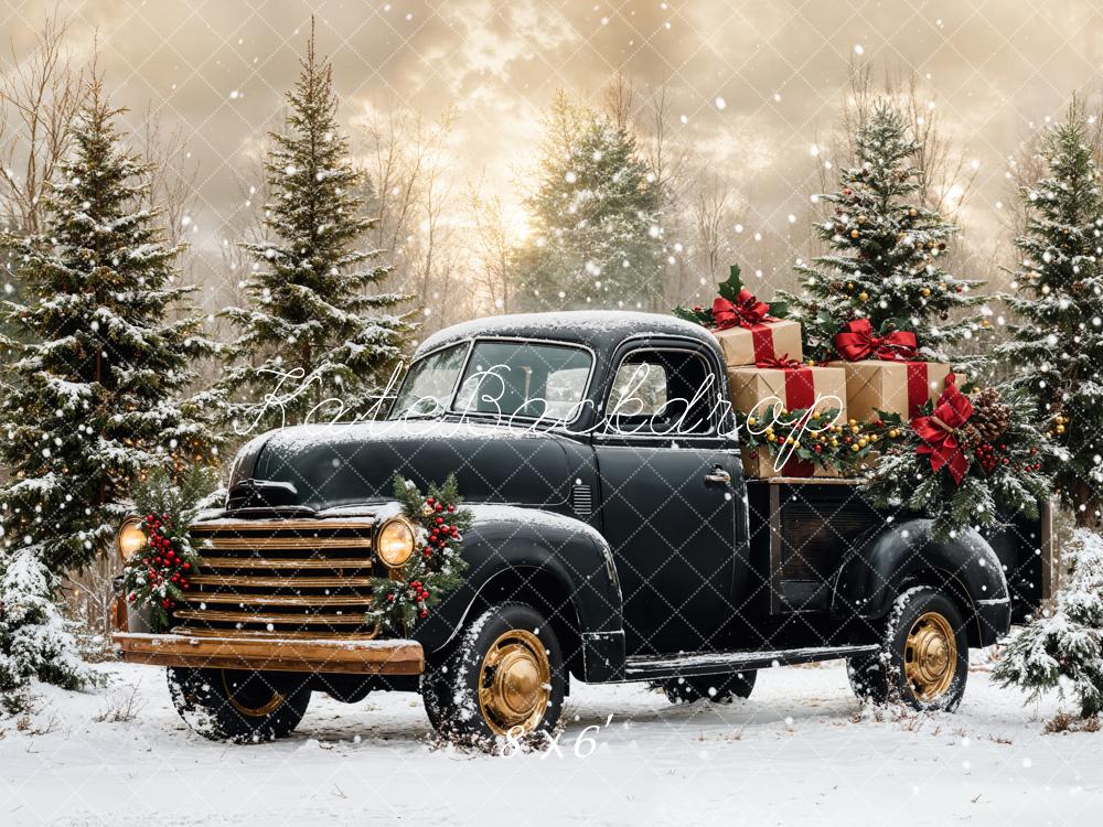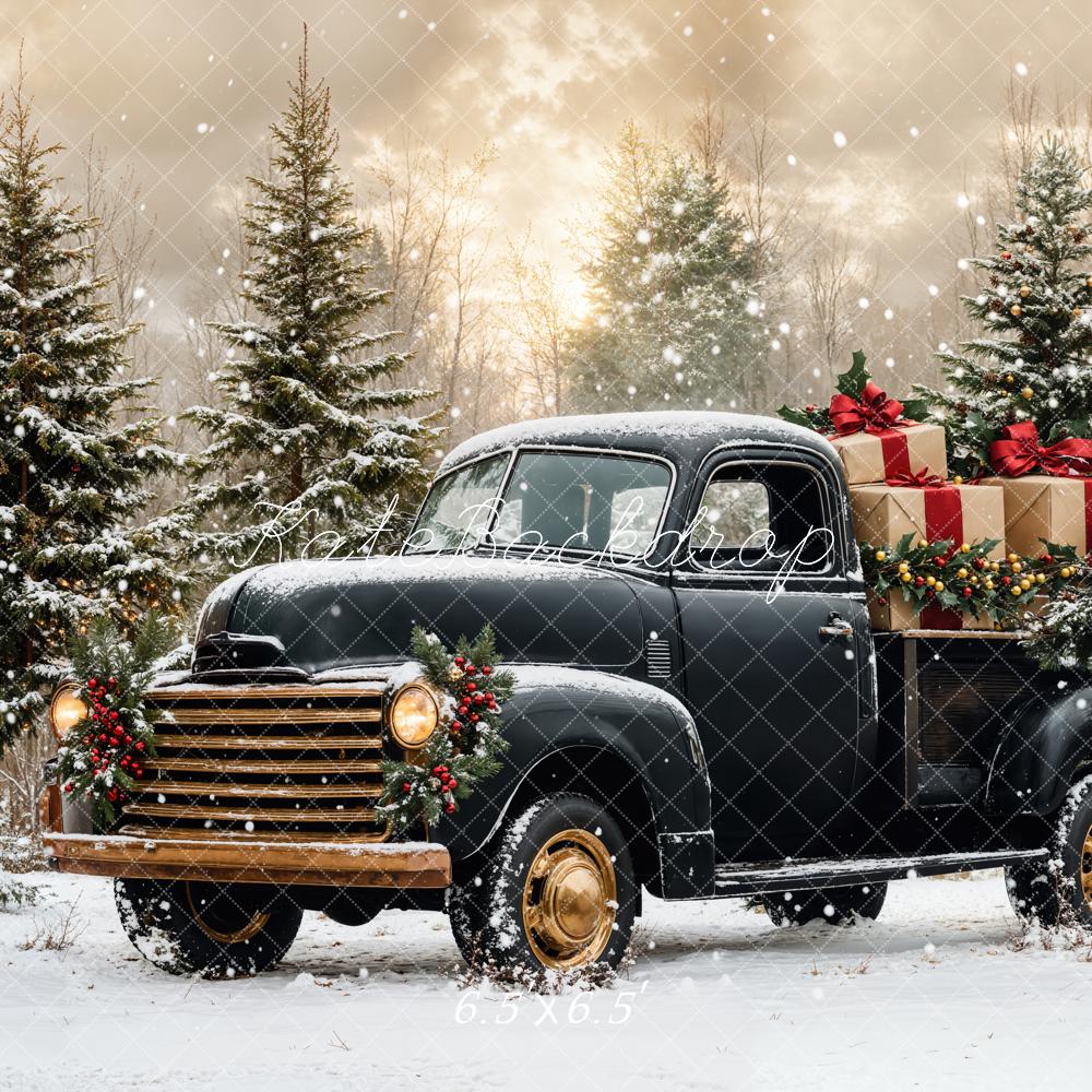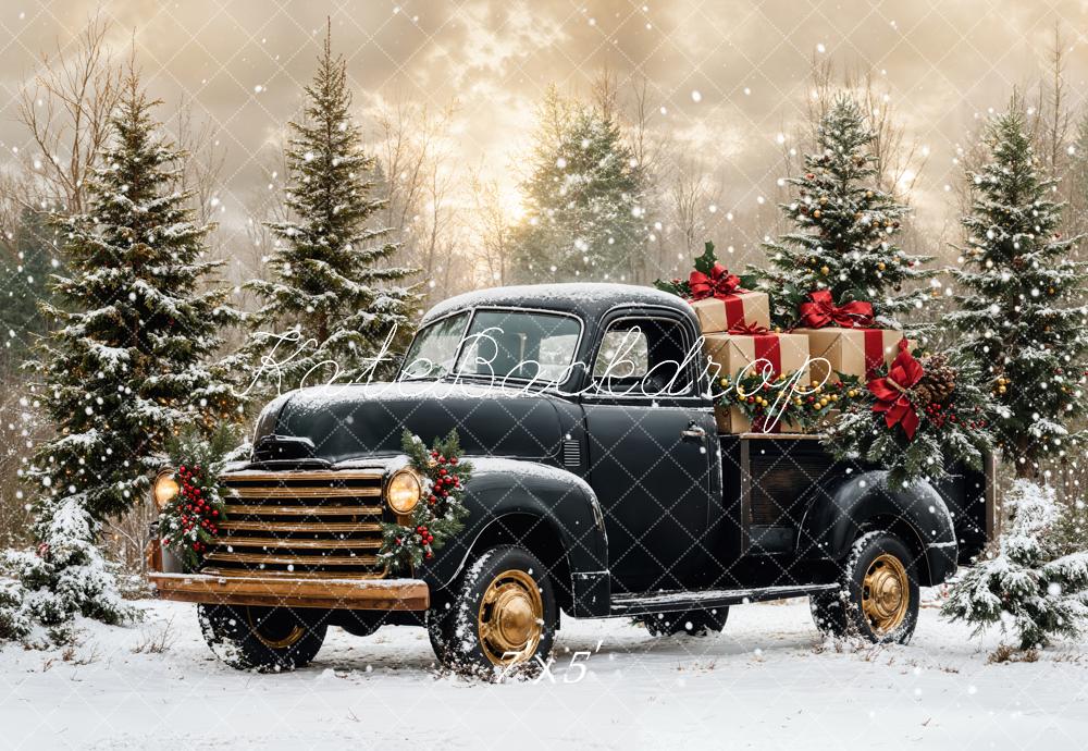 Kate Noël Camion Noir Neige Forêt Toile de fond conçue par Emetselch