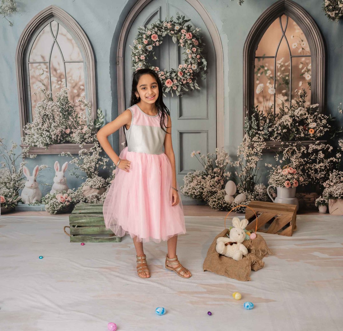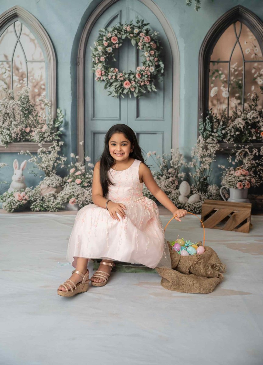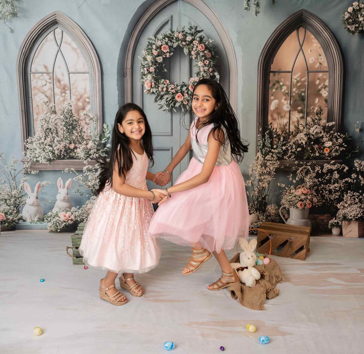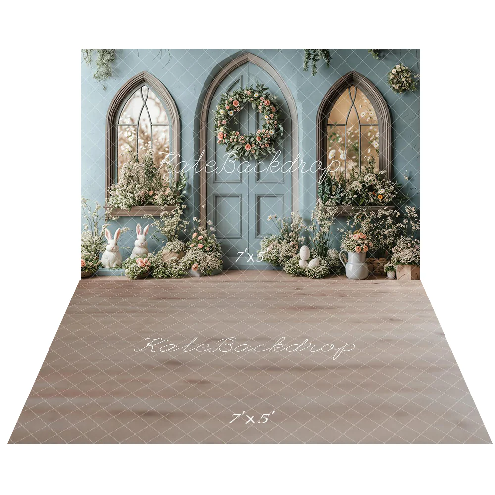 Kate Pâques Lapin Fleurs Bleu Porte Toile de fond+Neutre Parquet Bois Sol Toile de fond