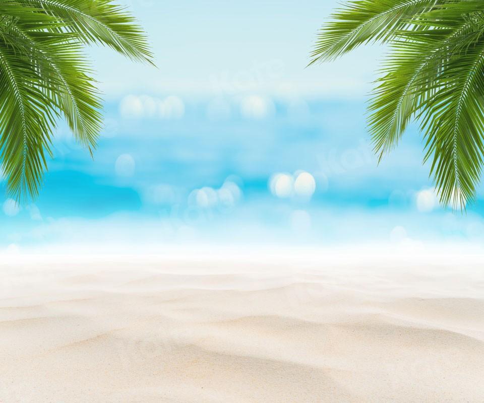 Kate Plage Été Feuilles de cocotier Mer Bokeh Toile de fond pour la photographie